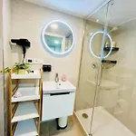The apartment offers guests the convenient feature of dryers, bath sheets, and bathrobes in the bathroom. A washing machine can also be found.